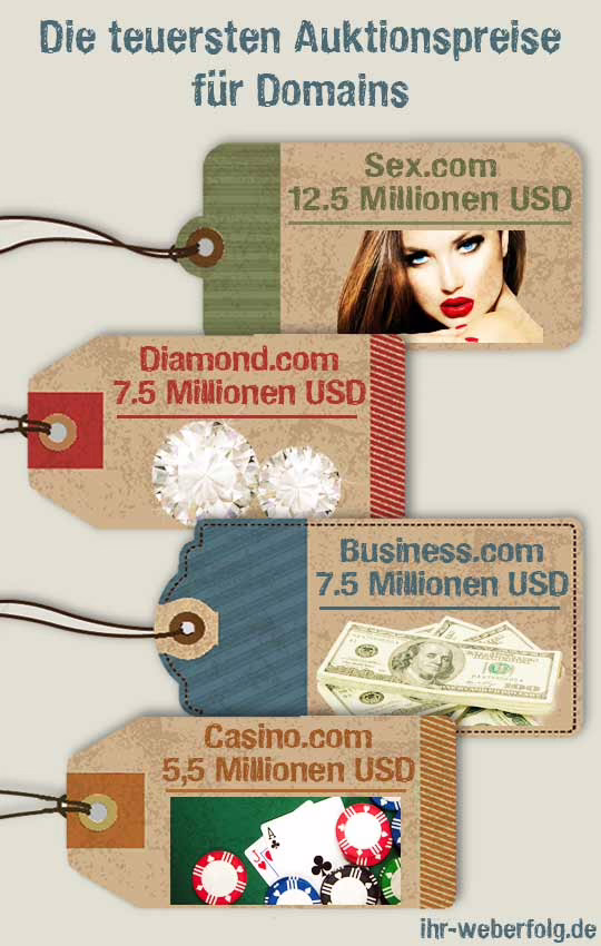 Wussten Sie, dass Erfolg versprechende Domainnamen bei Auktionen für 6- und 7‑stellige Beträge verkauft werden?